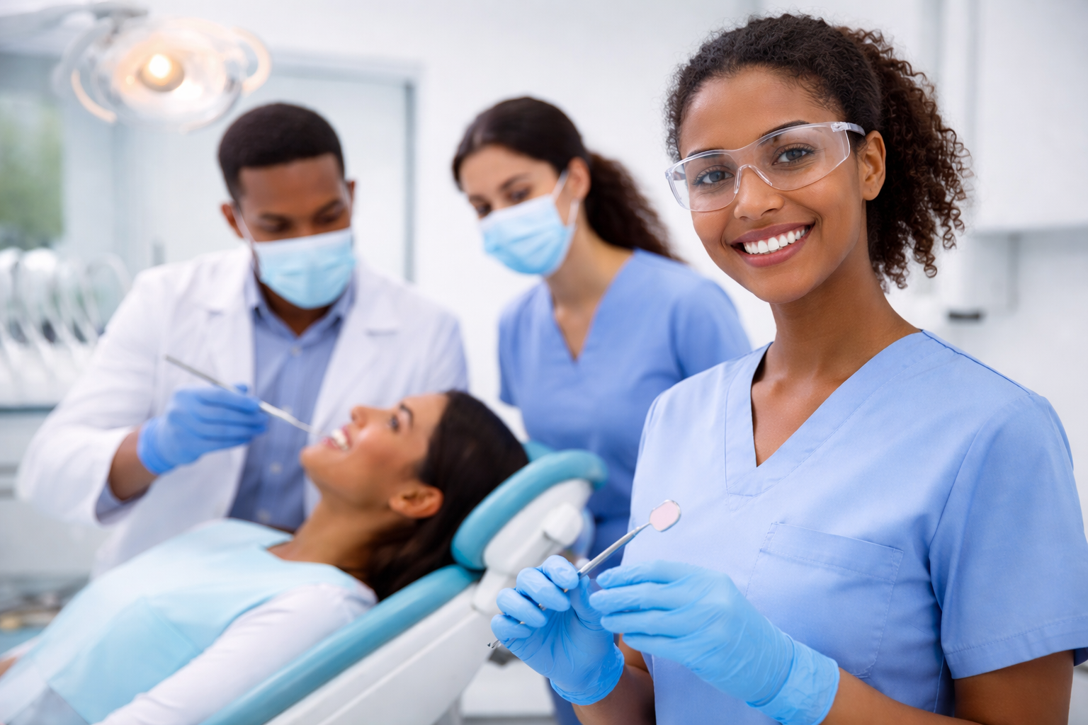 Our Dental Assistant Program is designed to prepare students with the practical skills, clinical knowledge, and professional confidence needed to succeed in today’s modern dental practices. Through a combination of hands-on training, in-person and virtual classroom instruction, and real-world experience, students learn essential chairside assisting techniques, infection control procedures, dental radiography, patient communication, and front-office operations.